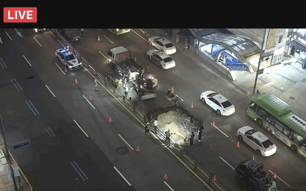 서울 도심 한복판에서 땅 꺼짐(싱크홀) 현상이 발생해 긴급 복구 작업이 진행 중이다.