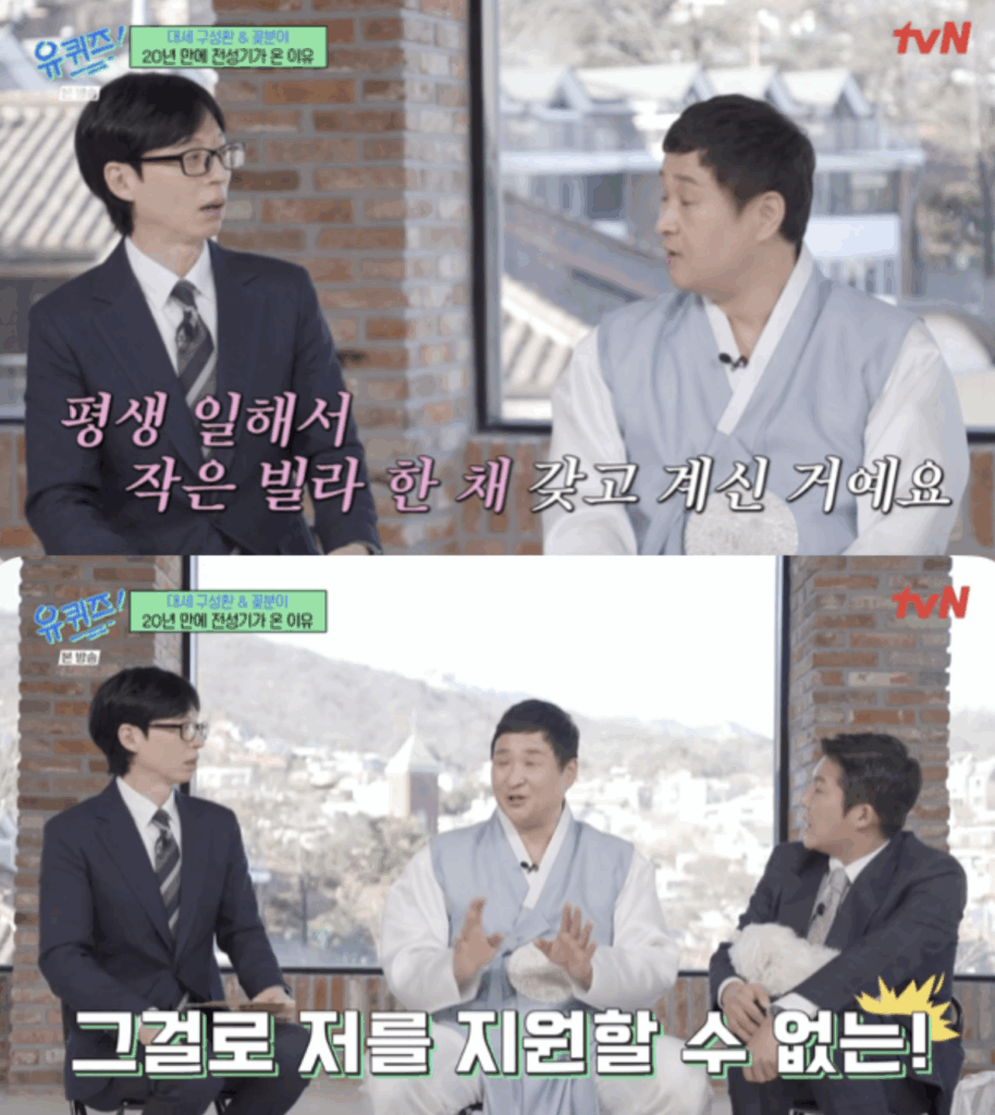 앞서 구성환은 MBC *‘나 혼자 산다’*에서 폭우로 인한 누수 피해와 과거 공사 사기 피해 경험을 공개하며, 직접 옥상 방수와 도배 작업을 하는 모습을 보여 화제를 모았다.