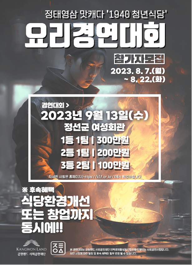 강원랜드사회공헌재단, ‘1940청년식당’요리대회 참가자 모집